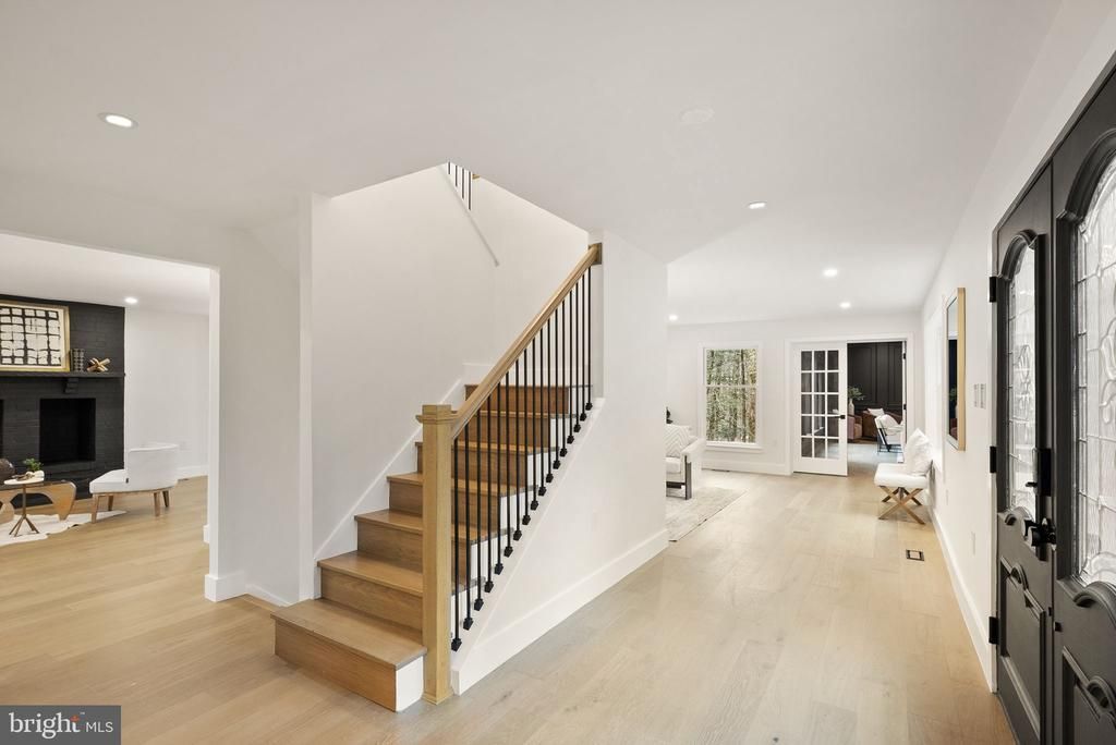 Wow—where do you start? This classic Great Falls estate has been completely reimagined and renovated with top‑of‑the‑line finishes and carefully curated design that fuses modern elegance with everyday function. Set on a serene, wooded 5‑acre lot, the nearly 7,000 sq ft of living space is move‑in ready and offers something for everyone. The main level showcases a gourmet chef’s kitchen with a 12' attached pantry, designer induction dual oven, striking hood, two dishwashers and a Cafe Series refrigerator—ample room to cook and entertain. The kitchen opens to a beautifully designed wet bar with custom Cafe beverage drawers and to a dramatic brick‑front hearth with wood‑burning fireplace that frames views of the private backyard. Seamless indoor‑outdoor living is perfected by the new main‑level deck, while the open living and dining rooms balance everyday comfort with the grace to host the most lavish affairs. The main‑level Great Room is an inspiring retreat, finished with custom moldings and abundant windows that flood the space with natural light. This exceptional property blends refined finishes, smart layout and peaceful acreage to create a rare Great Falls opportunity.